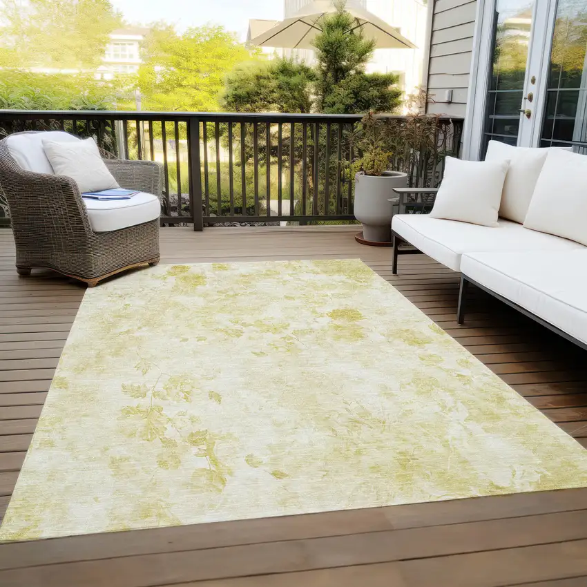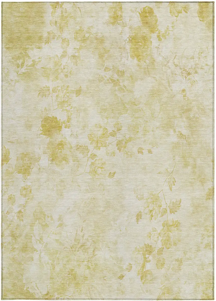 Set an inviting tone in your space with this 9-foot x 12-foot gold wheat and ivory floral washable indoor outdoor area rug. This rectangle shaped rug features a floral design that will work well both indoors or out. A classic shape marries with good looking design for your living room, hall, bedroom, porch, patio, or poolside. Ideal for outdoor spaces or high traffic areas with kids and pets, this rug is made from heavy duty polyester that is stain resistant to help repel water, dirt, and stains. Makes a great way to dress up your patio, porch, or poolside, but also works well as a durable and easy to maintain option in the kitchen, family room, or mudroom. 108-inch h x 144-inch w x 0.19-inch d.