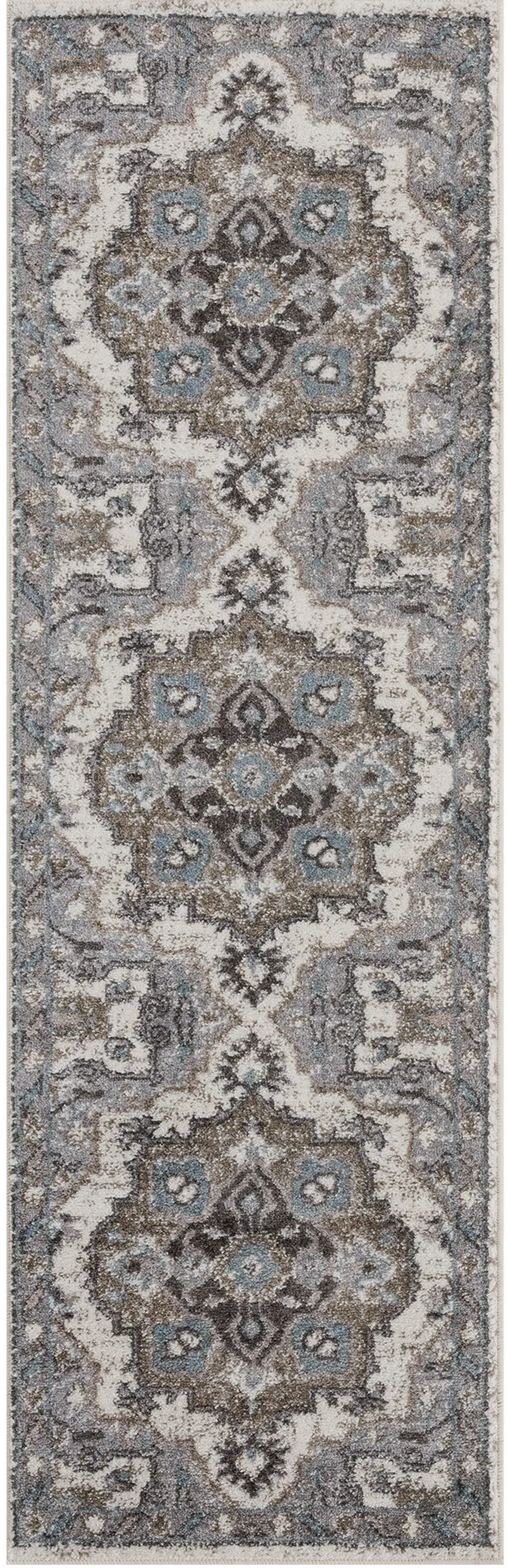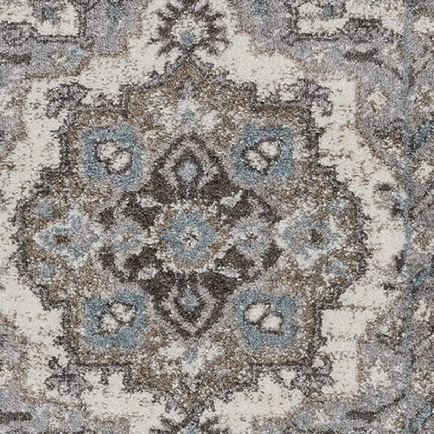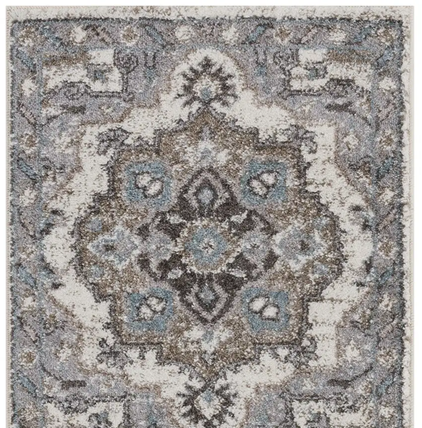 Gray and Beige Medallion Power Loom Runner Rug