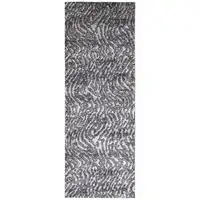 Gray and Black Abstract Shag Power Loom Runner Rug