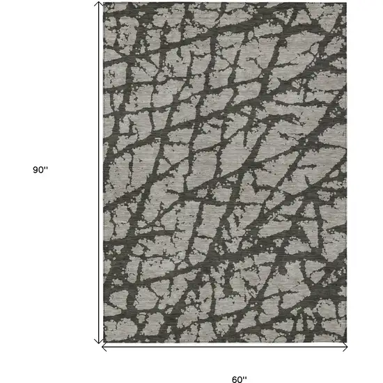 Gray and Black Abstract Washable Non Skid Indoor Outdoor Area Rug