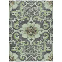Gray And Black Geometric Washable Indoor Outdoor Area Rug