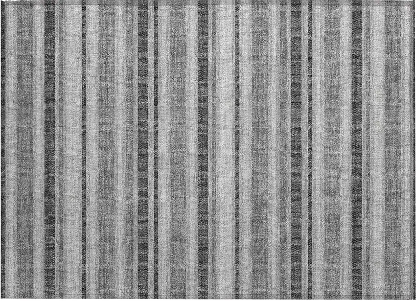 Gray and Black Striped Washable Non Skid Indoor Outdoor Area Rug