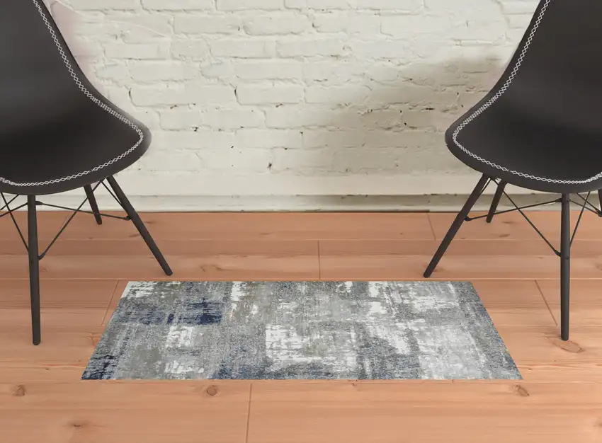 Gray and Blue Abstract Power Loom Area Rug
