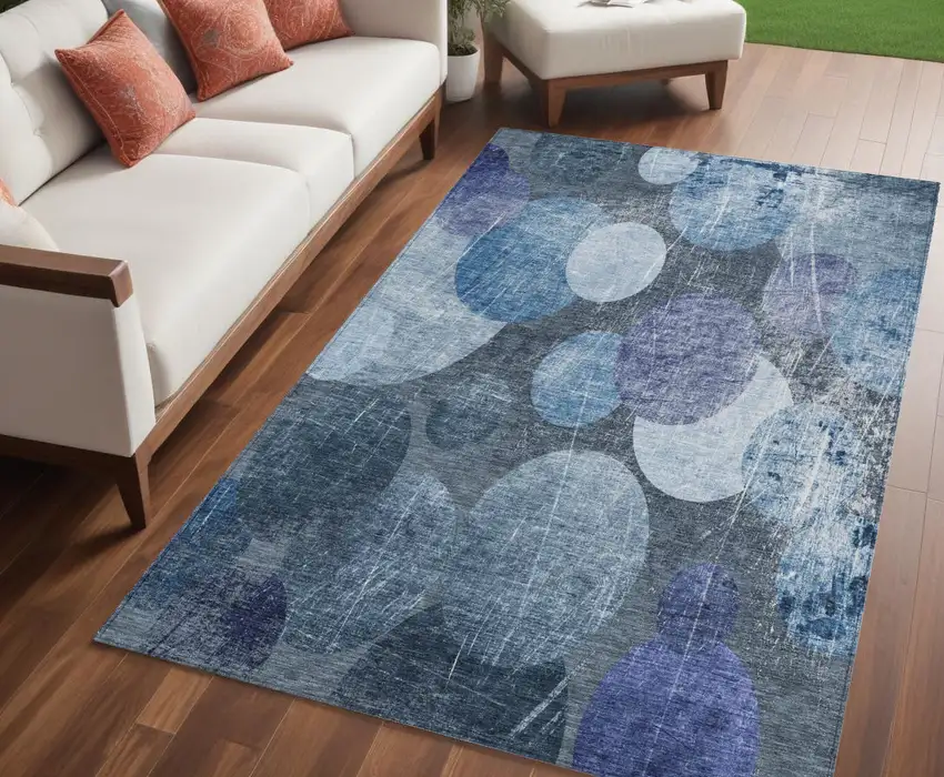 Gray and Blue Abstract Washable Non Skid Indoor Outdoor Area Rug