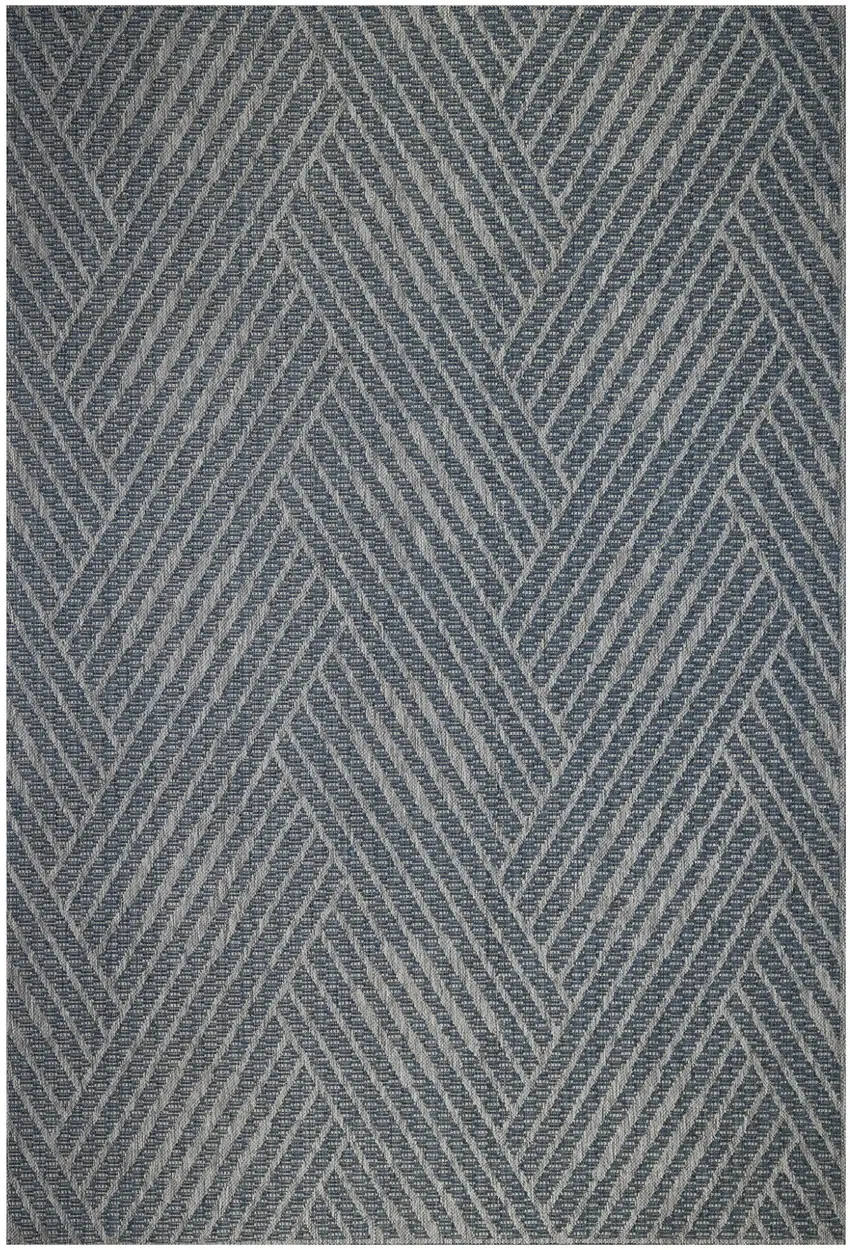 Gray and Blue Geometric Stain Resistant Indoor Outdoor Area Rug