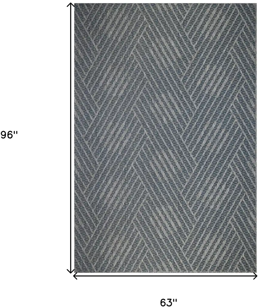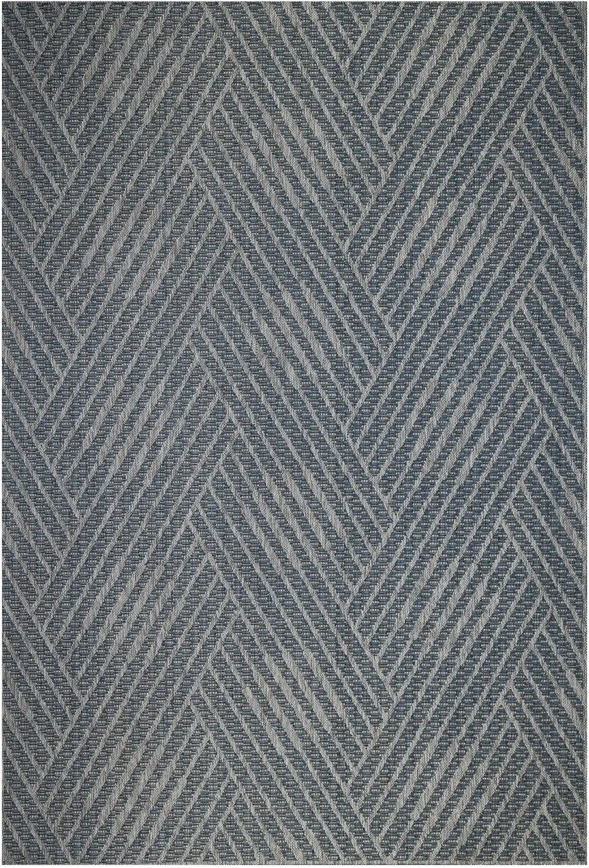 Gray and Blue Geometric Stain Resistant Indoor Outdoor Area Rug
