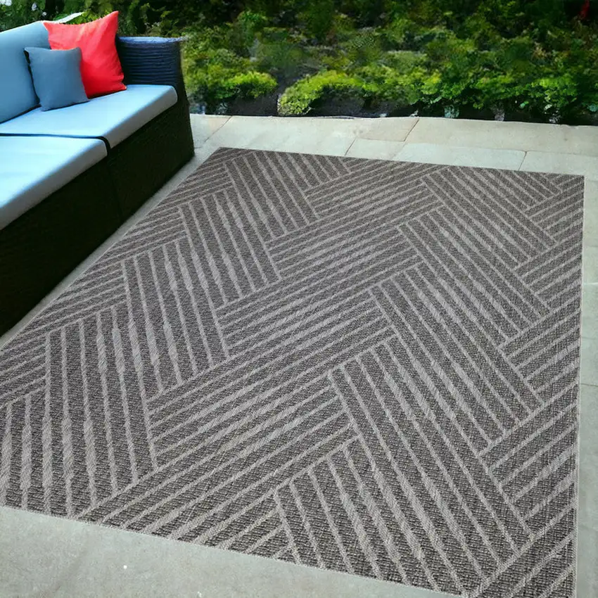 Gray and Blue Geometric Stain Resistant Indoor Outdoor Area Rug