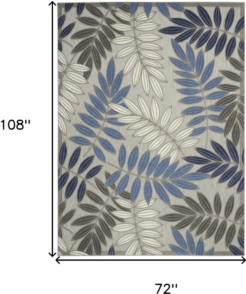 Gray and Blue Leaves Indoor Outdoor Area Rug