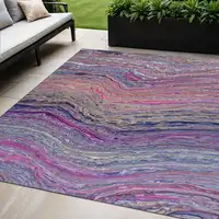 Gray and Blue Striped Stain Resistant Indoor Outdoor Area Rug