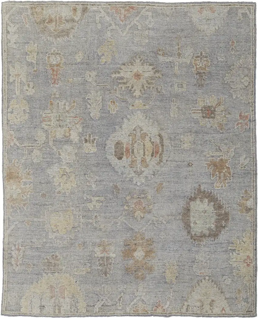 Gray and Blue Wool Floral Hand Knotted Area Rug