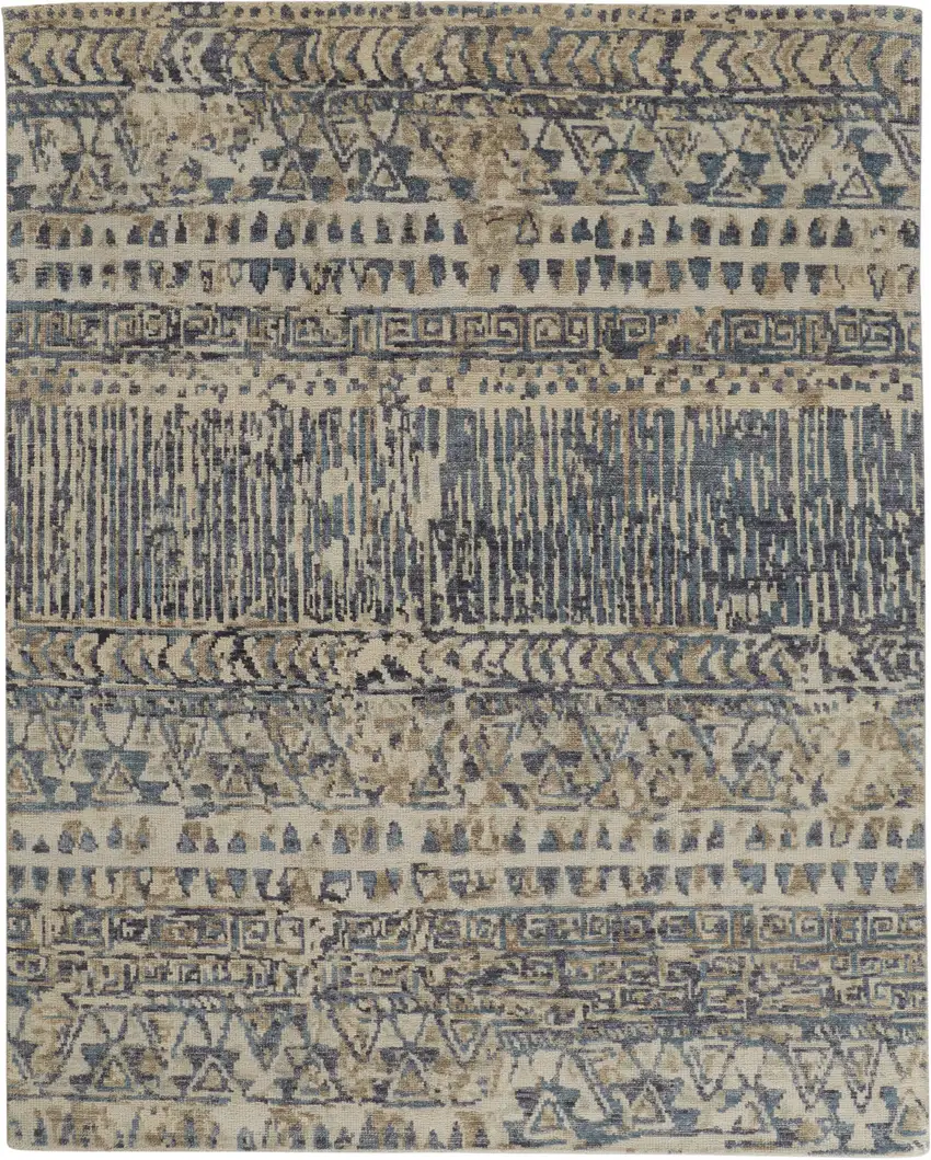 Gray and Blue Wool Geometric Hand Knotted Area Rug