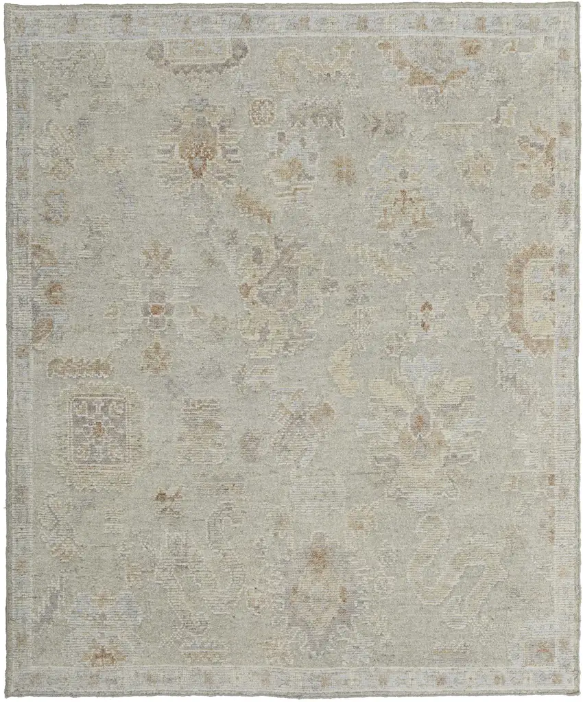Gray and Brown Wool Floral Hand Knotted Area Rug