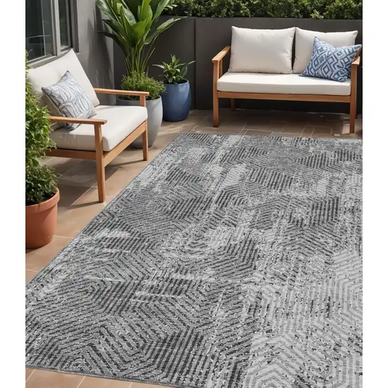 Gray And Charcoal Geometric Washable Indoor Outdoor Area Rug