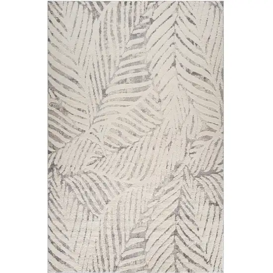 Gray and Cream Botanical Leaves Area Rug