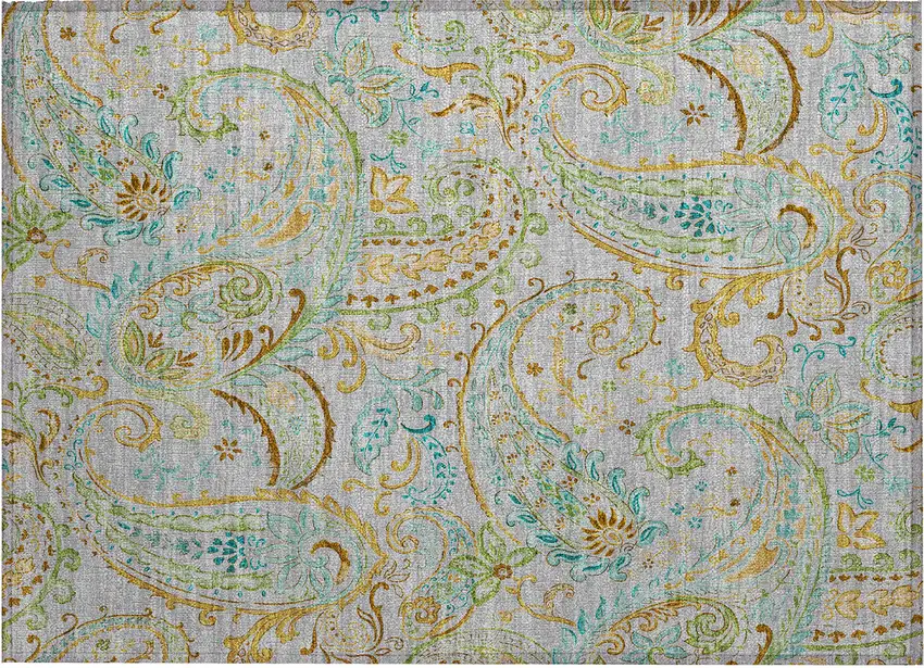 Gray and Gold Paisley Washable Non Skid Indoor Outdoor Area Rug