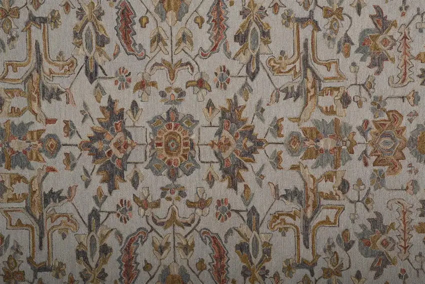 Gray And Gold Wool Floral Tufted Handmade Stain Resistant Area Rug
