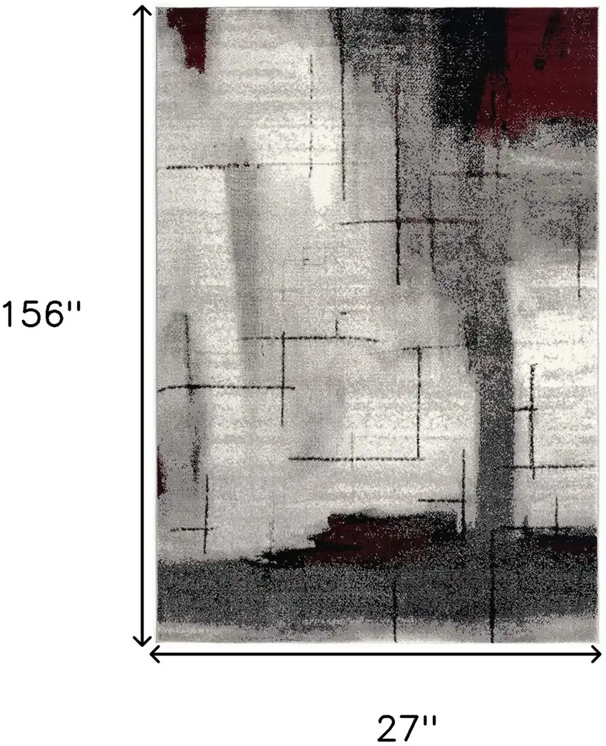 Gray and Ivory Abstract Shag Power Loom Runner Rug