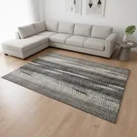 Gray And Ivory Abstract Washable Area Rug With UV Protection