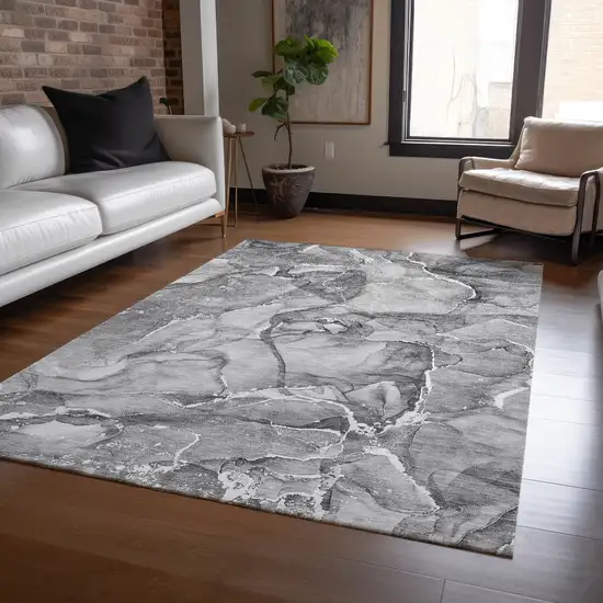 Add some artistry to your room with this 8-foot x 10-foot gray and ivory abstract washable stain resistant non skid indoor outdoor area rug. This rectangle shaped rug features a abstract design in gray and ivory to give it visual interest. A classic shape marries with good looking design for your space ideal for spaces with kids and pets, this rug is stain resistant to help repel stains and spilled liquids. Place this area rug against a hardwood or tile floor and it will enliven your living space with style and sophistication. 96-inch H x 120-inch W x 0.19-inch D