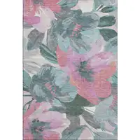 Gray And Ivory Floral Washable Area Rug With UV Protection