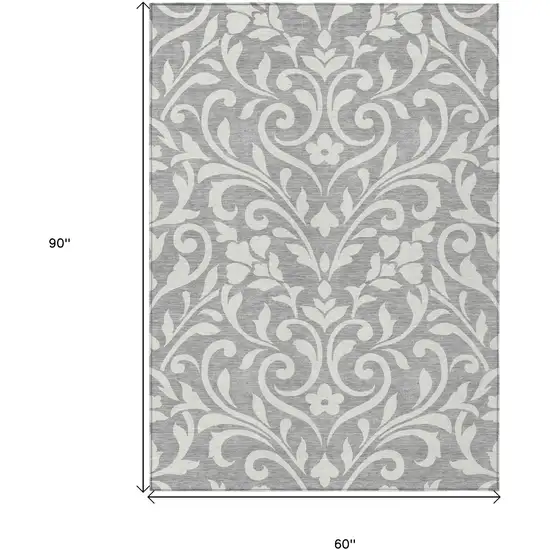 Gray And Ivory Floral Washable Indoor Outdoor Area Rug