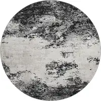 Gray and Ivory Geometric Hand Knotted Worn Faded Area Rug