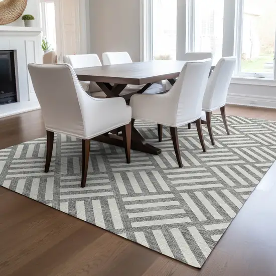 Gray And Ivory Geometric Washable Indoor Outdoor Area Rug