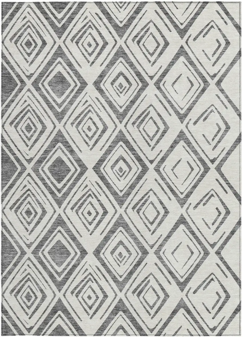 Gray And Ivory Geometric Washable Indoor Outdoor Area Rug