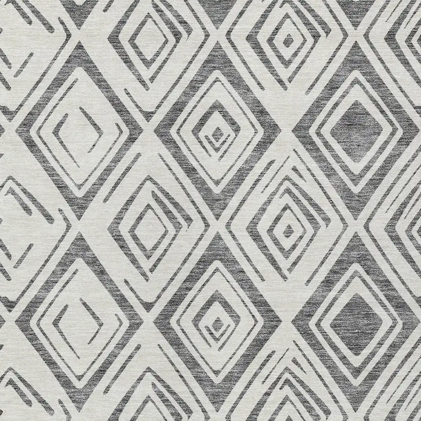 Gray And Ivory Geometric Washable Indoor Outdoor Area Rug