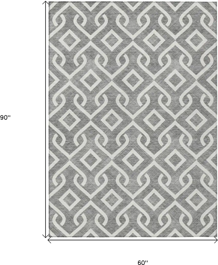 Gray And Ivory Geometric Washable Indoor Outdoor Area Rug