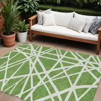 Gray And Ivory Geometric Washable Indoor Outdoor Area Rug