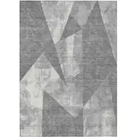 Gray and Ivory Geometric Washable Non Skid Indoor Outdoor Area Rug