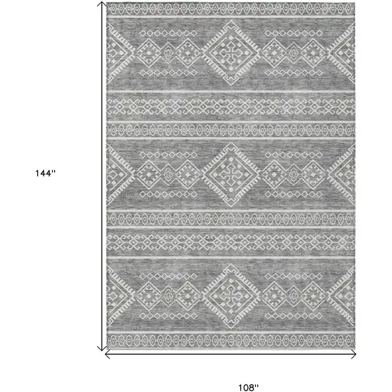 Set an inviting tone in your space with this 9-foot x 12-foot gray and ivory southwestern washable indoor outdoor area rug. This rectangle shaped rug features a southwestern design that will work well both indoors or out. A classic shape marries with good looking design for your living room, hall, bedroom, porch, patio, or poolside. Ideal for outdoor spaces or high traffic areas with kids and pets, this rug is made from heavy duty polyester that is stain resistant to help repel water, dirt, and stains. Versatile in use, durable, and easy to maintain, this rug is an ideal solution to add a decorative and inviting touch to your indoor or outdoor space. 108-inch h x 144-inch w x 0.19-inch d.