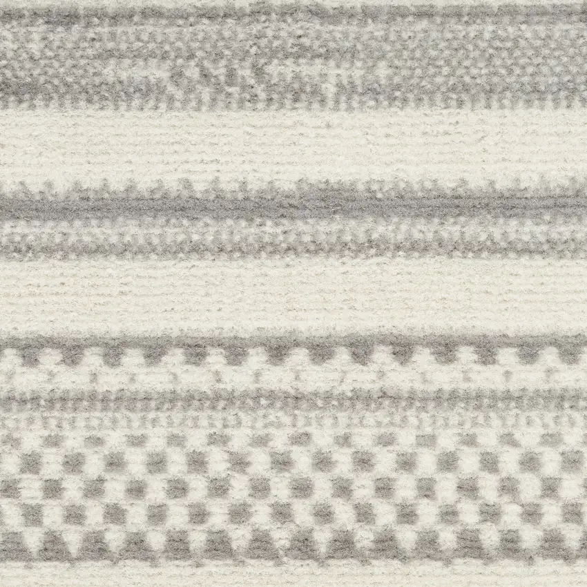 Gray and Ivory Striped Power Loom Distressed Runner Rug