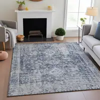 Gray And Ivory Striped Washable Area Rug With UV Protection