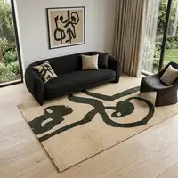 Gray and Ivory Wool Checkered Hand Knotted Worn Faded Area Rug