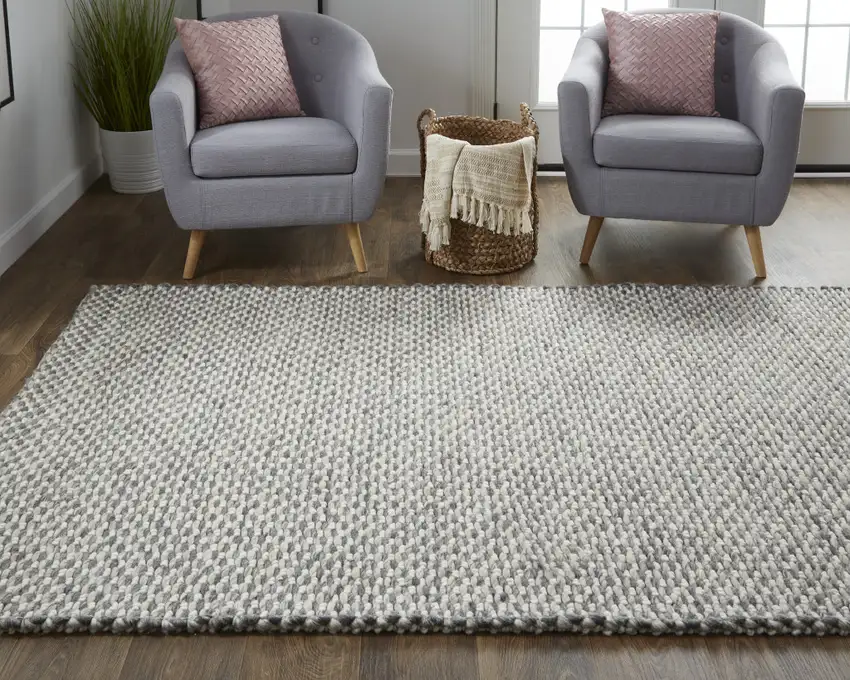 Embrace the simplicity and charm of this meticulously hand-woven wool rug. Boasting an irresistible floral pattern in shades of gray and ivory, it's also stain-resistant for easy maintenance.