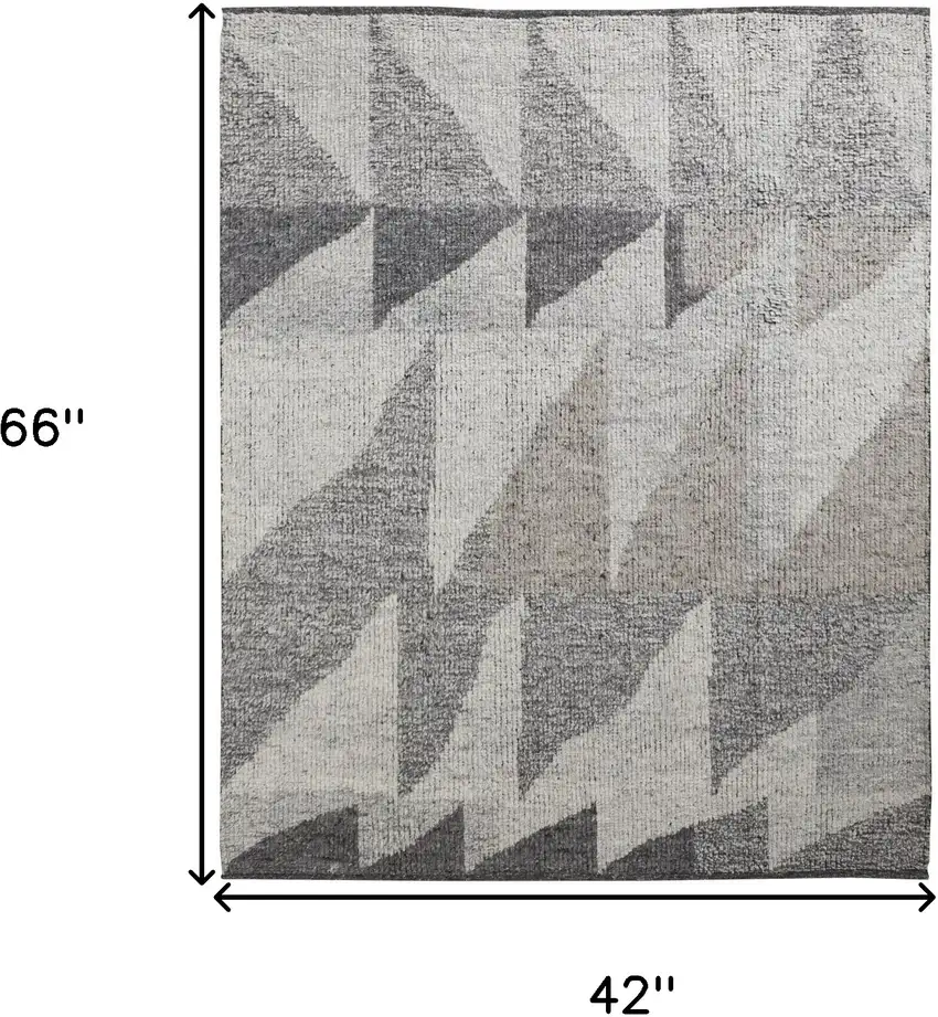 Gray and Ivory Wool Geometric Hand Knotted Area Rug