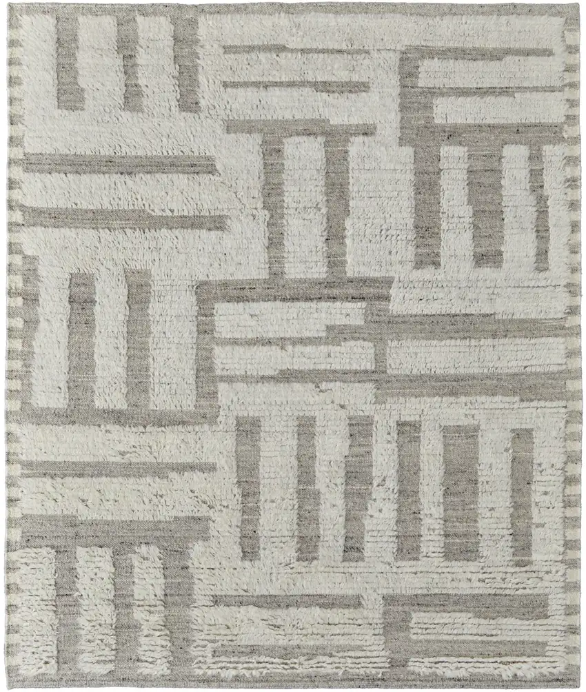 Gray and Ivory Wool Geometric Hand Woven Area Rug
