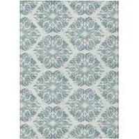 Gray And Navy Blue Medallion Indoor Outdoor Area Rug