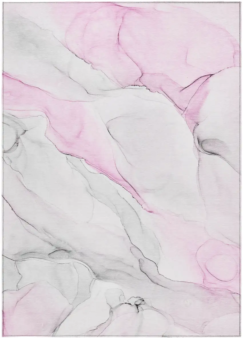 Gray and Pink Abstract Washable Non Skid Indoor Outdoor Area Rug
