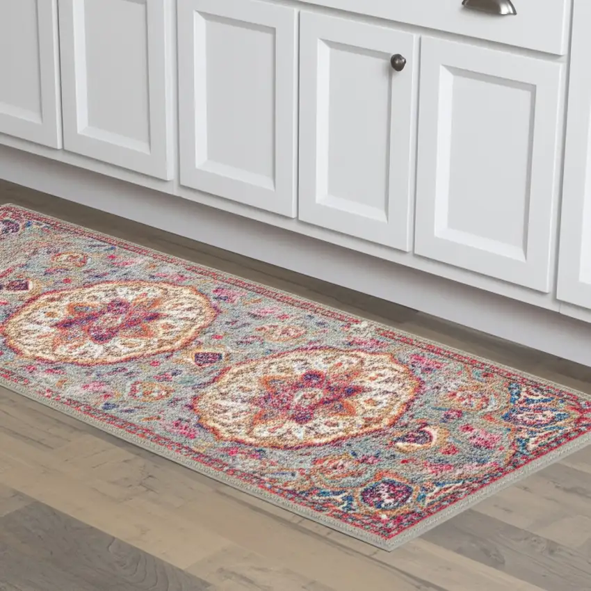 Gray and Pink Medallion Runner Rug