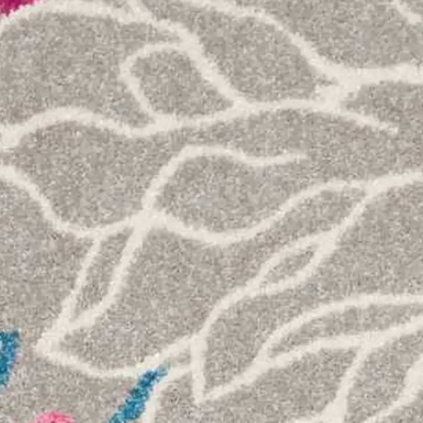 Elevate your home's visual appeal with this gray and pink rug featuring the exotic charm of tropical flowers. Adding a sophisticated grace to your interiors, it also ensures plush comfort under your feet.