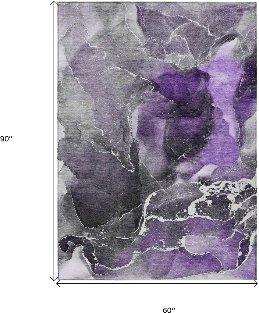Gray and Purple Abstract Washable Non Skid Indoor Outdoor Area Rug