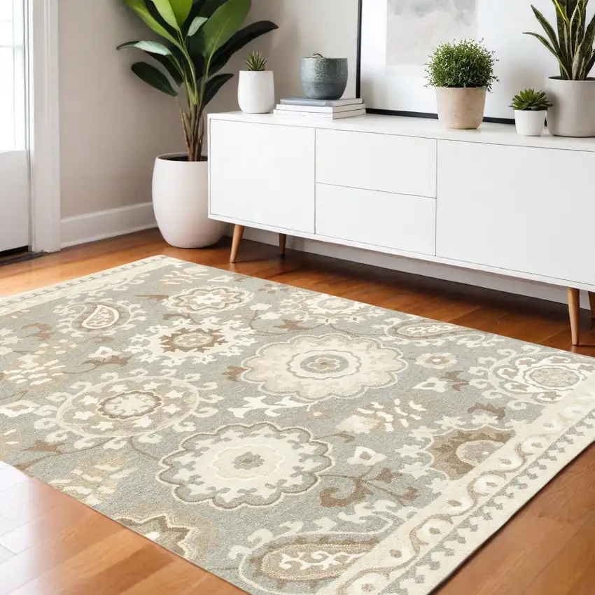 Gray And Sand Wool Floral Hand Tufted Area Rug
