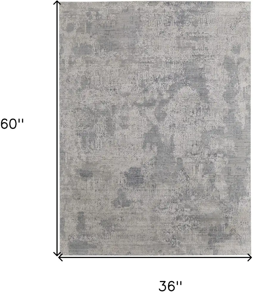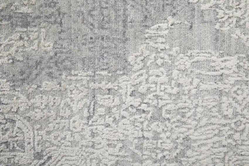 Gray and Silver Abstract Hand Woven Worn Faded Area Rug