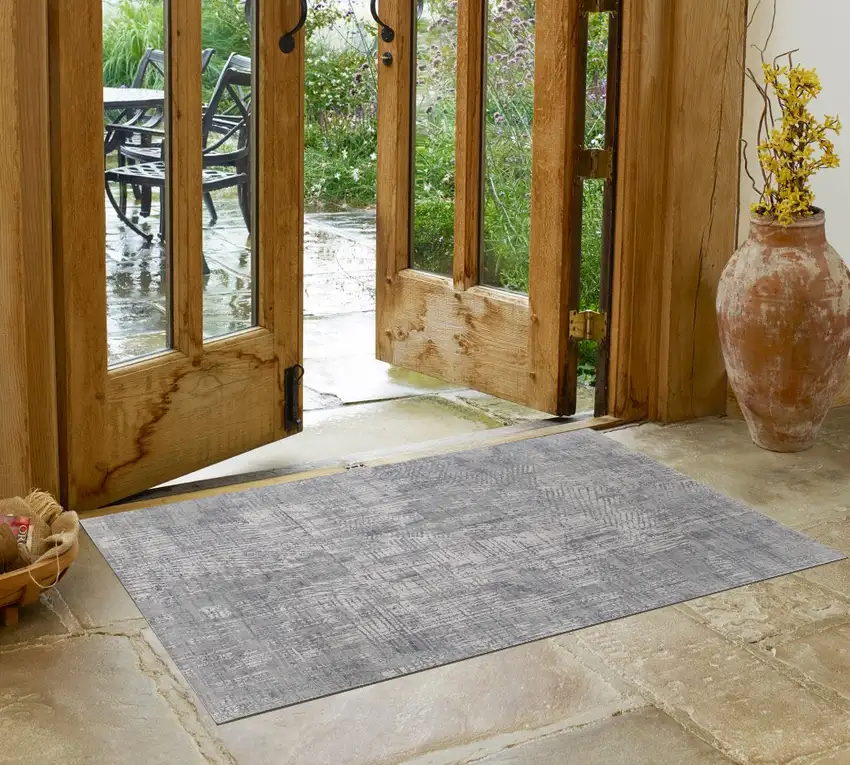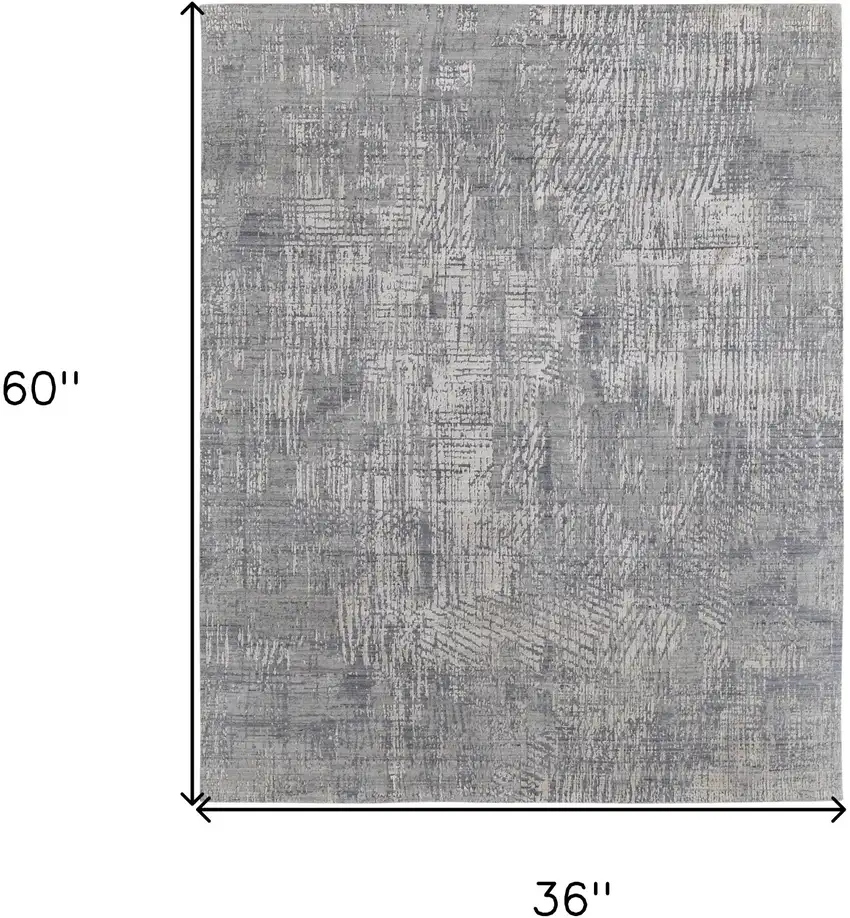 Gray and Silver Abstract Hand Woven Worn Faded Area Rug