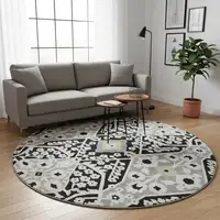 Gray and Silver Abstract Hand Woven Worn Faded Area Rug