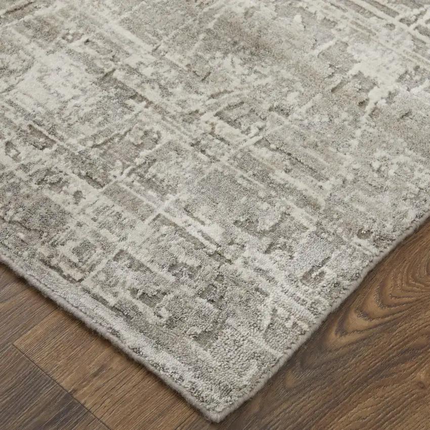 Gray and Silver Abstract Hand Woven Worn Faded Area Rug