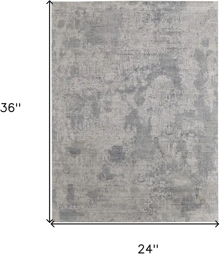Gray and Silver Abstract Hand Woven Worn Faded Area Rug